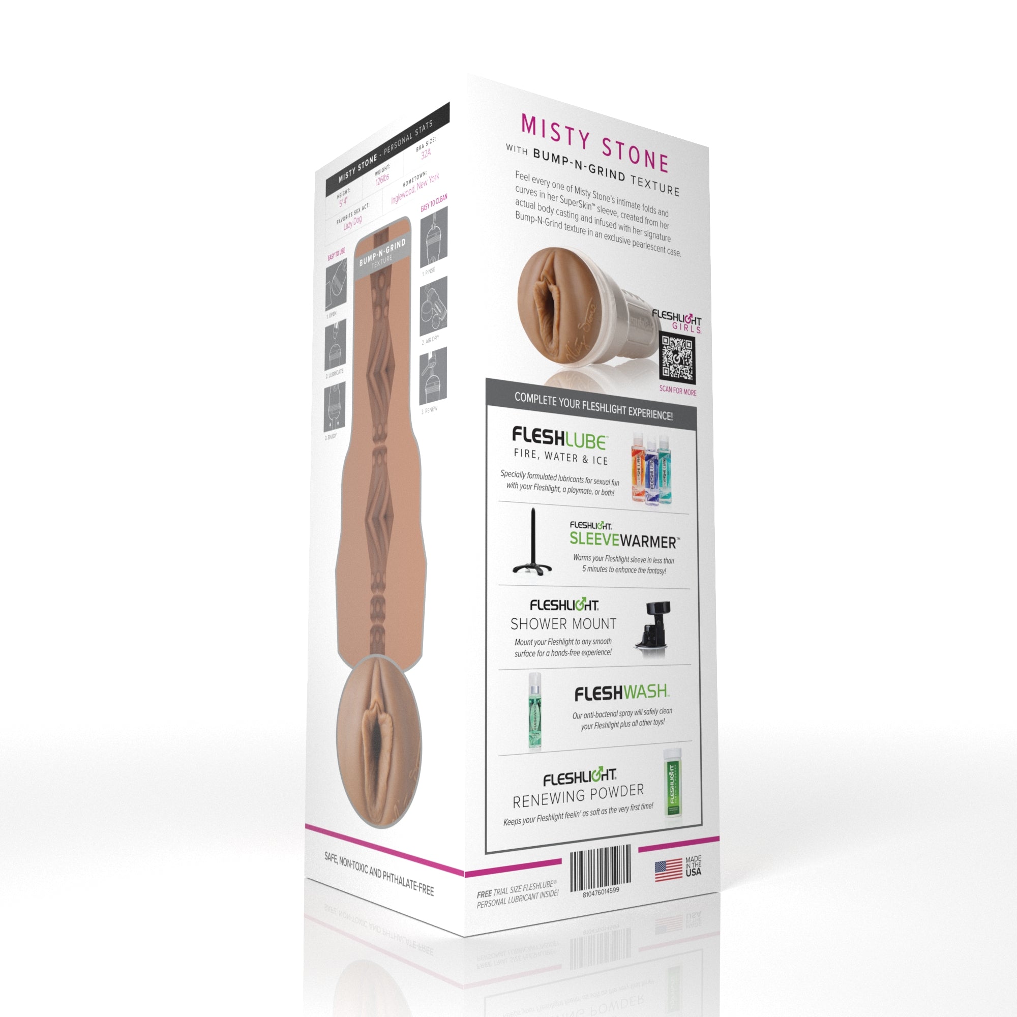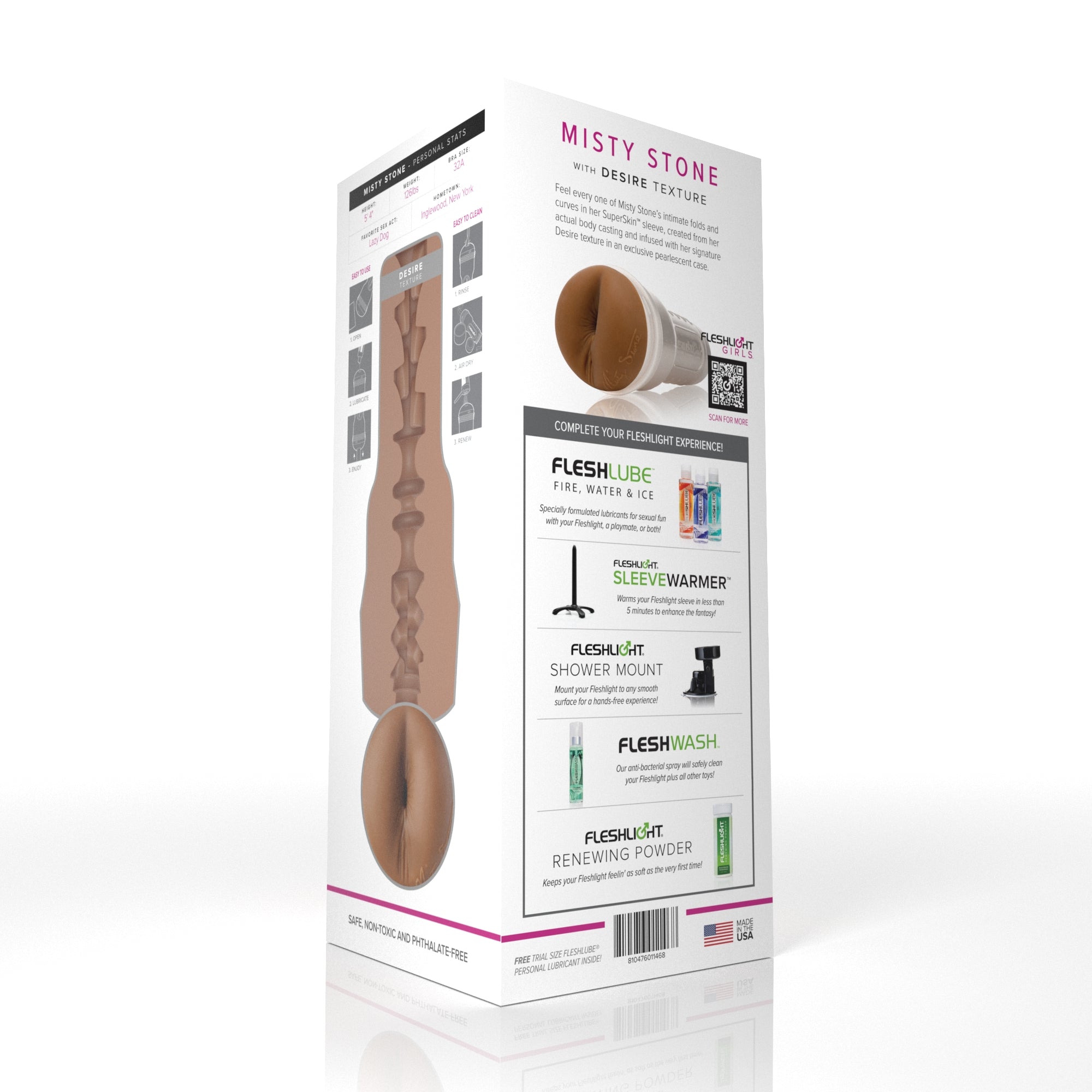 Penetrate Misty's luscious bubble butt for a snug and stimulating ride of a lifetime. Once inside her behind, prepare yourself for a whirlwind of tight ribbed textures, squeezing pleasure rings, and stimulating waves designed to caress you with every thrust